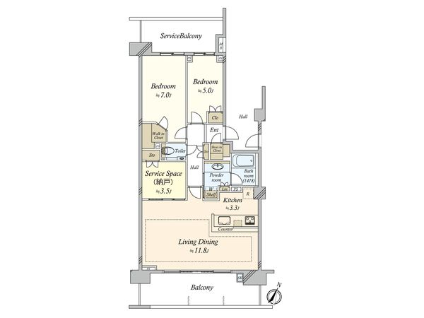 | 間取り | 2SLDK ※S・サービススペースは納戸です |