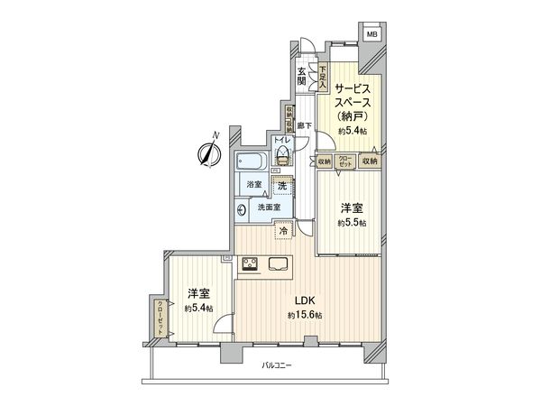 | 間取り | 2SLDK ※S・サービススペースは納戸です |