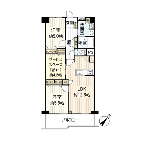 | 間取り | 2SLDK ※S・サービススペースは納戸です |