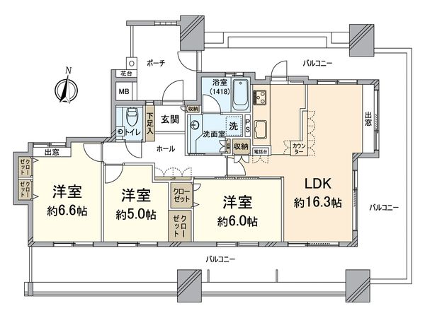 | バルコニー | 53.6㎡ |