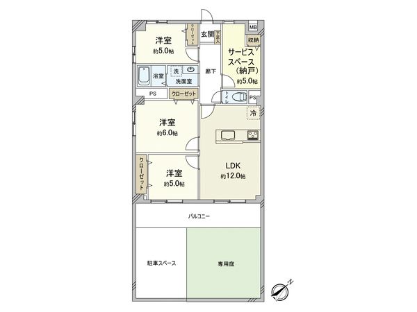| 間取り | 3SLDK ※S・サービススペースは納戸です |