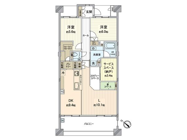 | 間取り | 2SLDK ※S・サービススペースは納戸です |