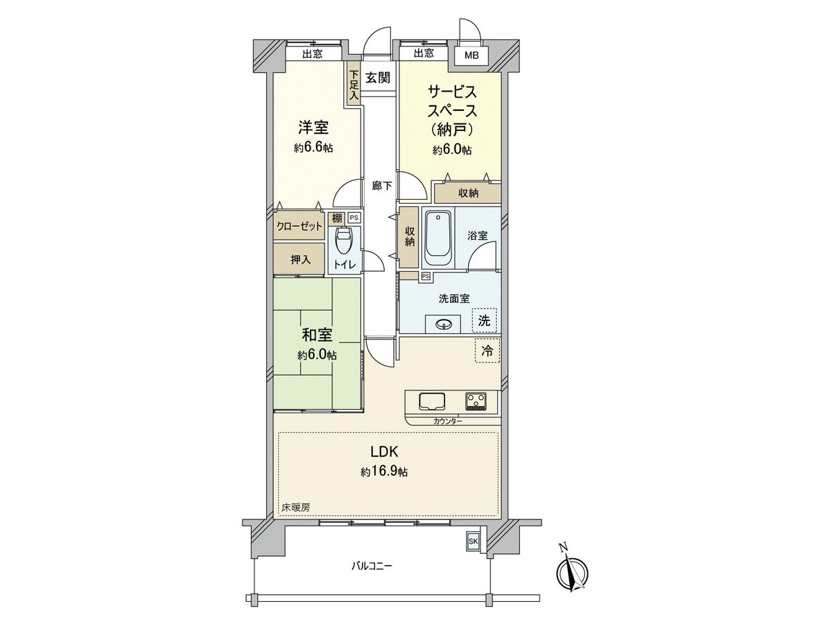 | 間取り | 2SLDK ※S・サービススペースは納戸です |