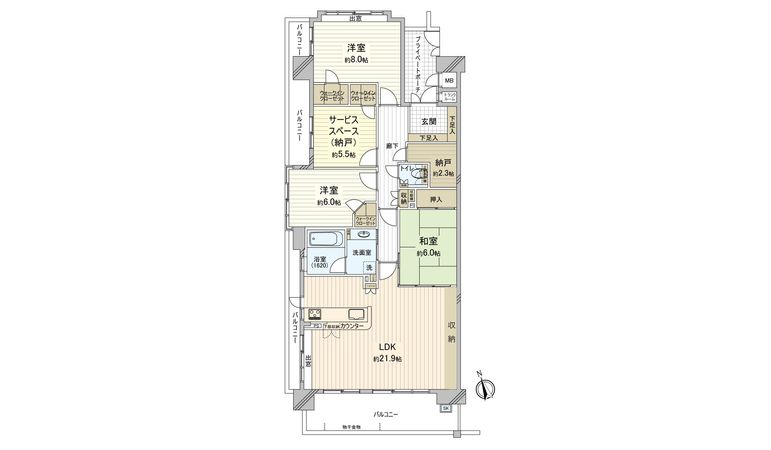 | 間取り | 3SLDK ※S・サービススペースは納戸です |
