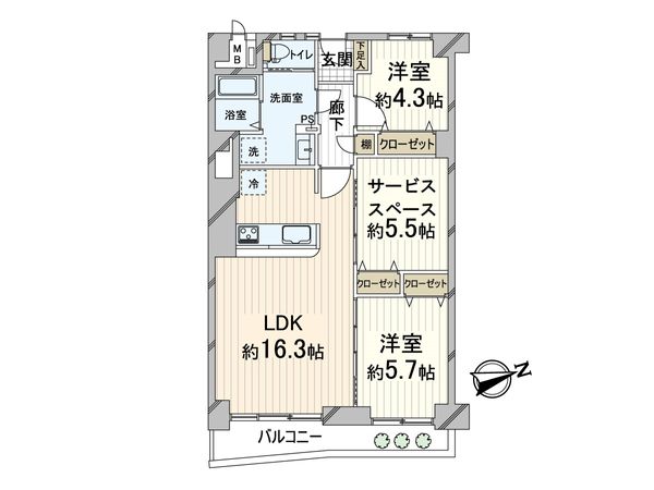 | 間取り | 2SLDK ※S・サービススペースは納戸です |