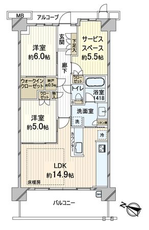 | 間取り | 2SLDK ※S・サービススペースは納戸です |