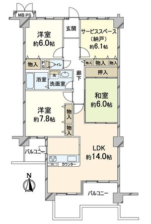 | 間取り | 3SLDK ※S・サービススペースは納戸です |