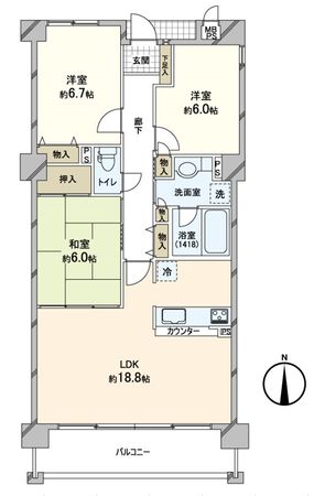 3LDK / 65.44㎡