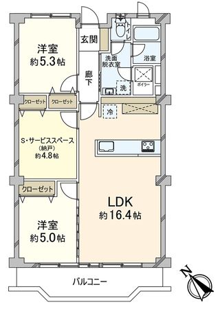 | 間取り | 2SLDK ※S・サービススペースは納戸です |