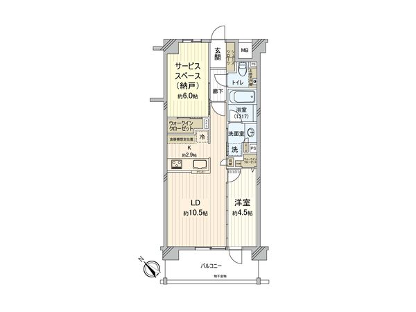 | 間取り | 1SLDK ※S・サービススペースは納戸です |
