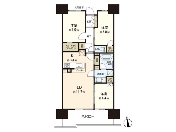 3DK / 56.7㎡ / 1997年03月築 / 3階
