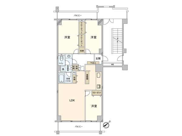 3LDK / 72.11㎡ / 1974年11月築 / 2階