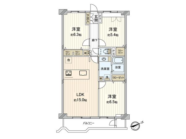 3LDK / 68.46㎡ / 1999年08月築 / 3階