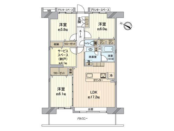3LDK / 76.1㎡ / 1995年02月築 / 3階