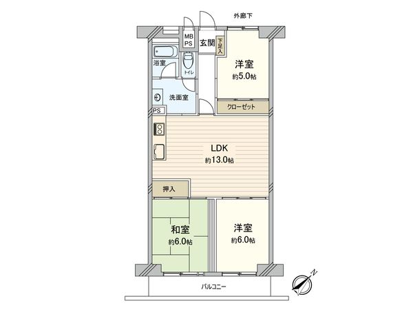 3LDK / 68.25㎡ / 1996年09月築 / 6階