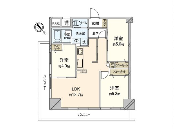 3LDK / 74.3㎡ / 1997年09月築 / 5階