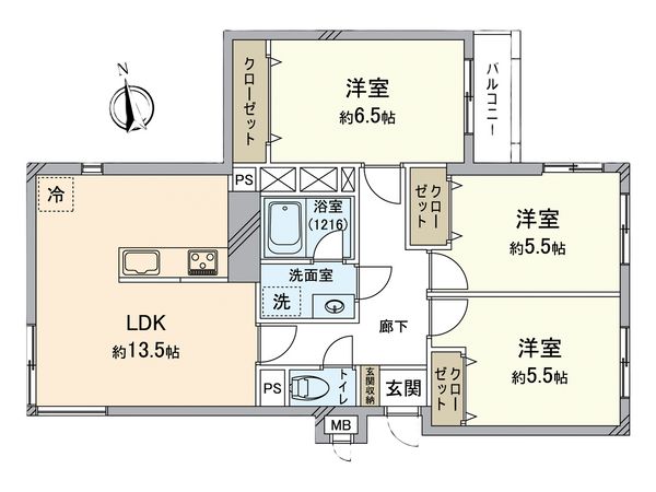 3LDK / 65.94㎡ / 1986年11月築 / 3階