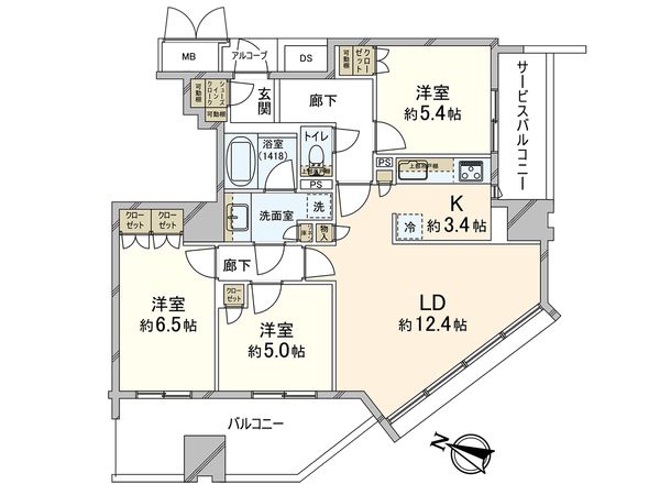 3LDK / 68.84㎡ / 1999年02月築 / 5階