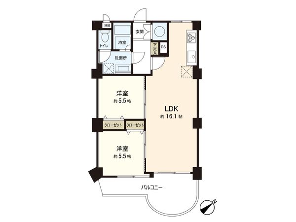 2LDK / 61.48㎡ / 2000年09月築 / 5階