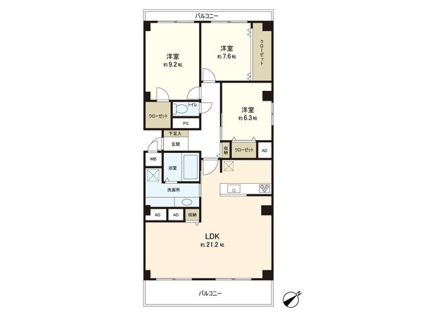 3LDK / 85.16㎡ / 2004年02月築 / 3階