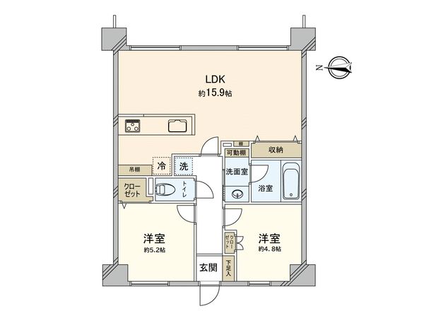 2LDK / 57.12㎡ / 1993年04月築 / 4階