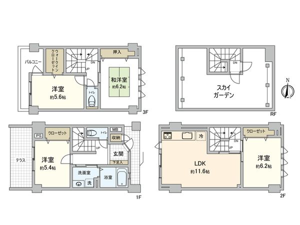 3LDK / 64.62㎡ / 1996年03月築 / 6階