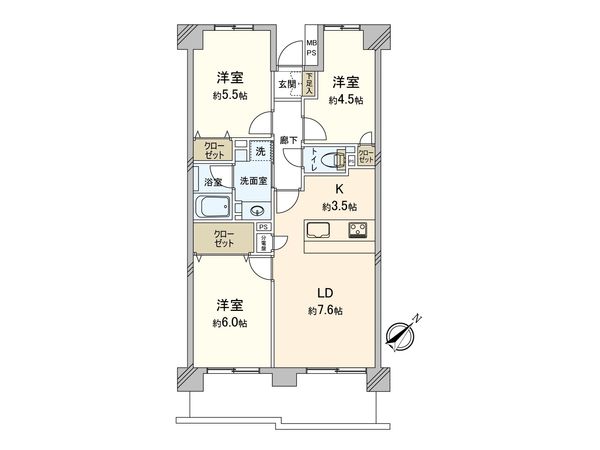 3LDK / 77.66㎡ / 2004年12月築 / 3階