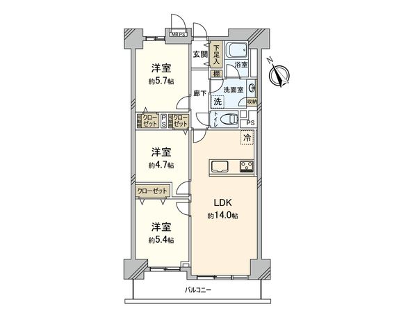 2LDK / 67.6㎡ / 1994年03月築 / 3階