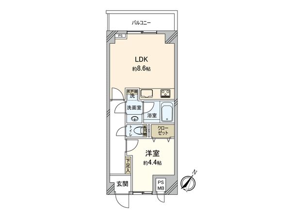 1LDK / 50.6㎡ / 2000年07月築 / 4階