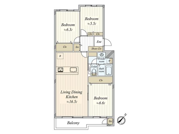 3LDK / 66.59㎡ / 1996年03月築 / 1階