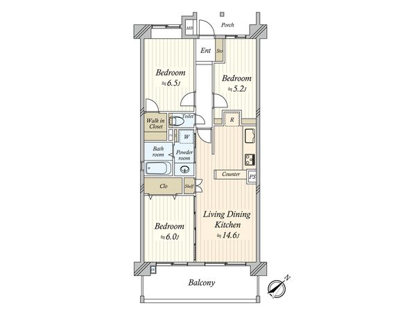 3LDK / 66.05㎡ / 1998年03月築 / 3階