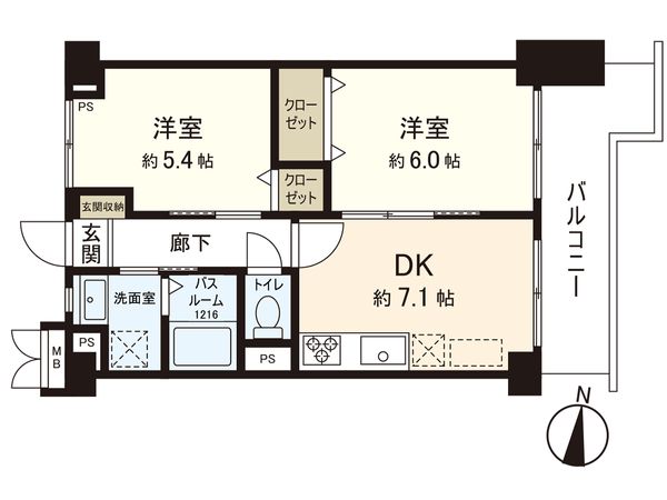 2LDK / 63.74㎡ / 1998年03月築 / 7階