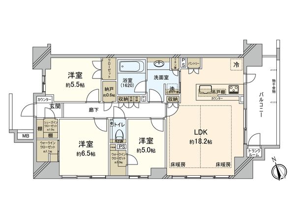 3LDK / 72.82㎡ / 1996年02月築 / 6階