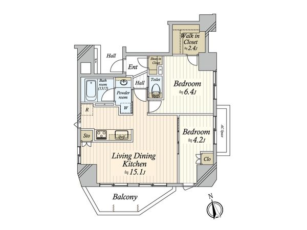 2LDK / 60.72㎡ / 2004年09月築 / 13階