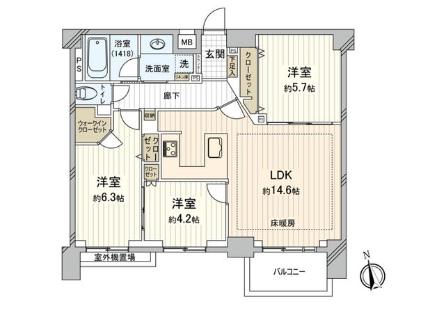 3LDK / 68.35㎡ / 2014年05月築 / 7階