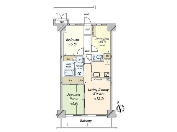 3LDK / 68.5㎡ / 2000年09月築 / 4階