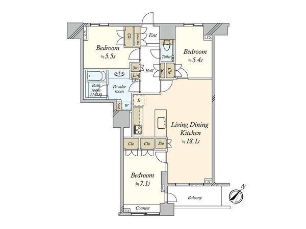 3LDK / 77.55㎡ / 2016年11月築 / 26階