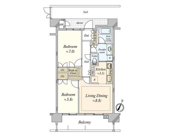 2LDK / 60.12㎡ / 2004年01月築 / 7階