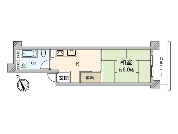 1K / 18.84㎡ / 1988年10月築 / 6階