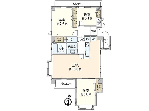 3LDK / 76.6㎡ / 2004年08月築 / 4階