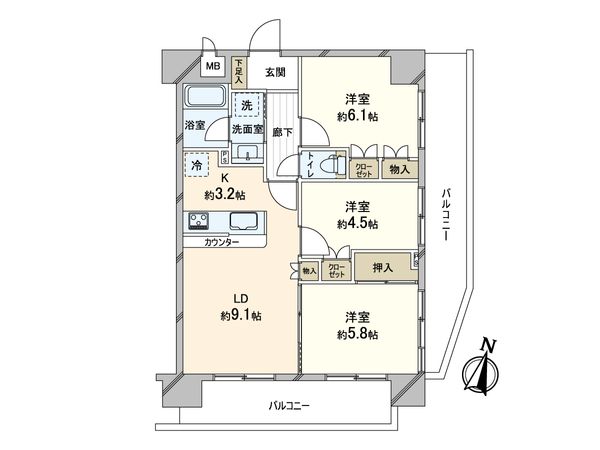 3LDK / 76.1㎡ / 1995年02月築 / 3階