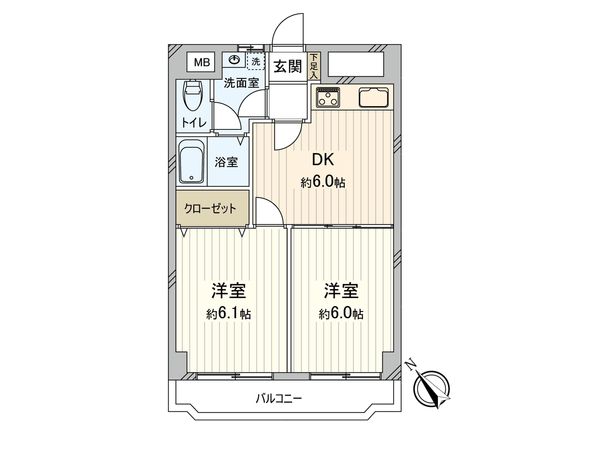 2LDK / 50.88㎡ / 1995年12月築 / 4階