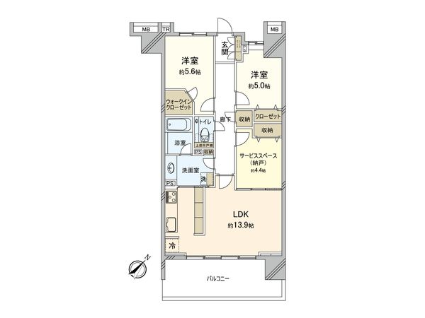 2LDK / 56.83㎡ / 2014年10月築 / 3階