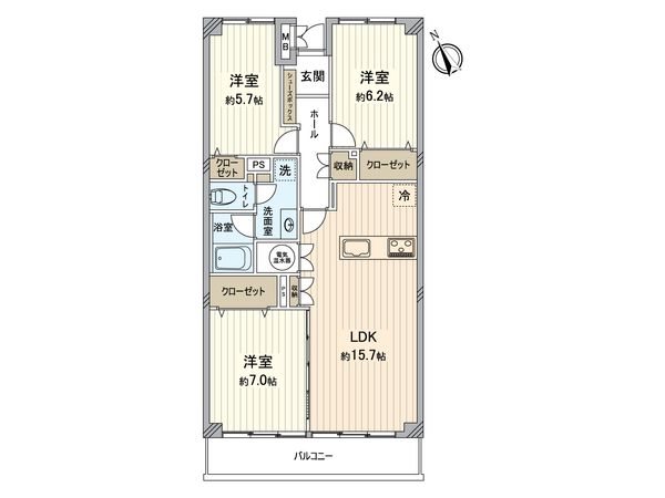 3LDK / 57.62㎡ / 1995年06月築 / 5階