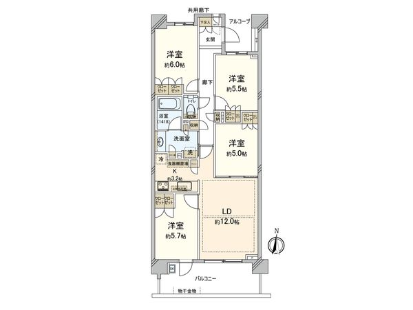 3LDK / 72.59㎡ / 2000年03月築 / 6階