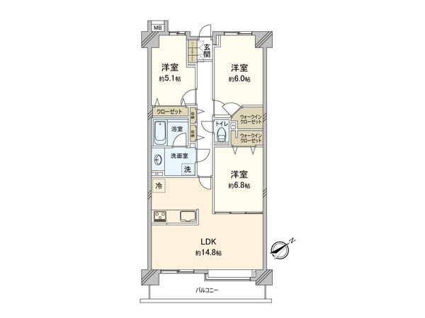 3LDK / 68.25㎡ / 2006年02月築 / 7階