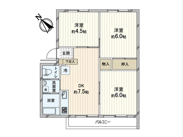 3LDK / 75.04㎡ / 1990年07月築 / 3階