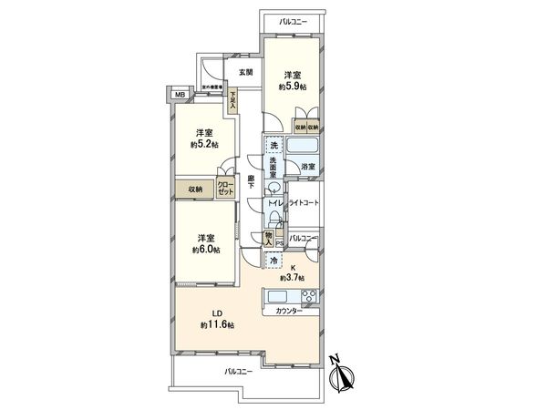 3LDK / 61.42㎡ / 1995年04月築 / 3階