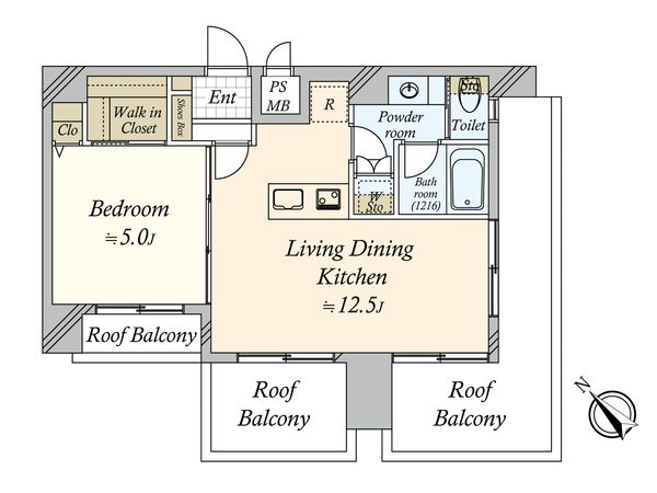 2LDK / 45.5㎡ / 1972年07月築 / 5階
