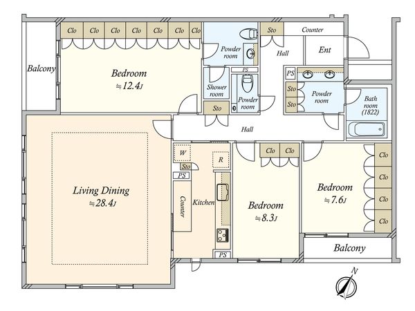 3LDK / 105.29㎡ / 2017年09月築 / 7階